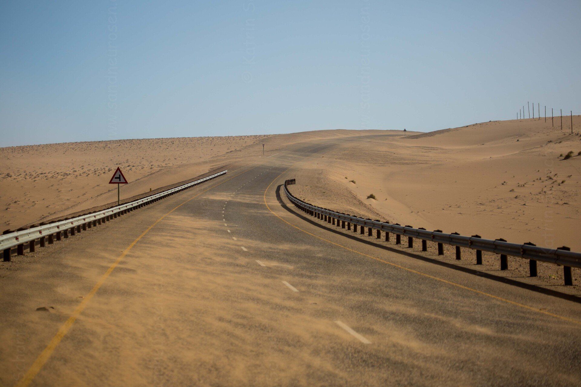 Weiter gen Norden, weiter durch tiefen Sand. Gerade noch fühlten wir uns frisch geduscht, ein paar Minuten später klebt der nächste Staub auf der Haut.